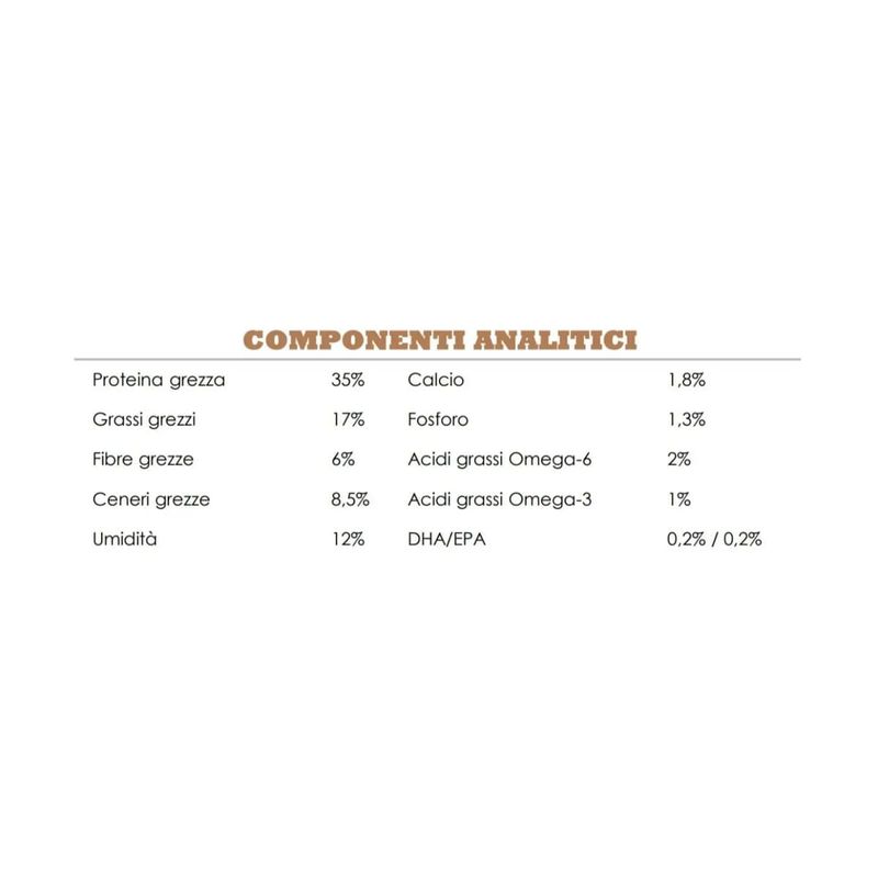 • Metà degli ingredienti animali sono freschi, mentre l'altra metà è disidratata.