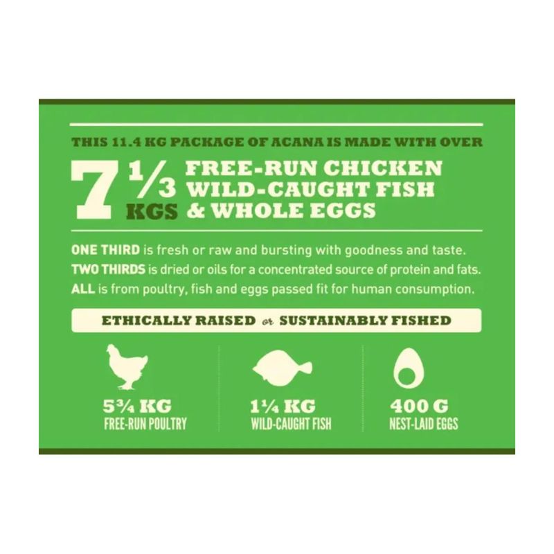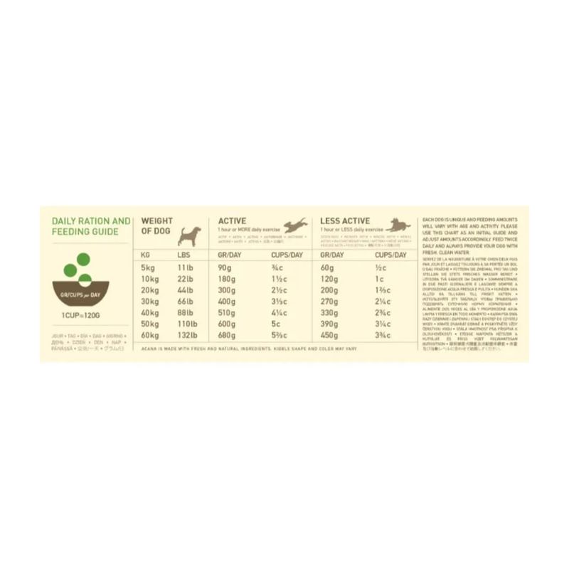 ACANA è un marchio di alimenti qualità premium per cani e gatti, nato oltre 25 anni fa nelle pluripremiate cucine Champion Petfoods. Qui vengono preparati ogni giorno alimenti biologicamente appropriati per cani e gatti, fatti con ingredienti regionali freschi e curati in ogni dettaglio della produzione. Le ricette di ACANA si basano sul principio del Biologically Appropriate e prevede la riproduzione di qualità, freschezza e varietà degli ingredienti animali che cani e gatti trovano in natura: un’alimentazione ricca di carne e proteine, con ridotto o assente contenuto di carboidrati, nessun estratto di proteine vegetali e l’integrazione di piccole percentuali di frutta, verdura, bacche e ingredienti botanici.