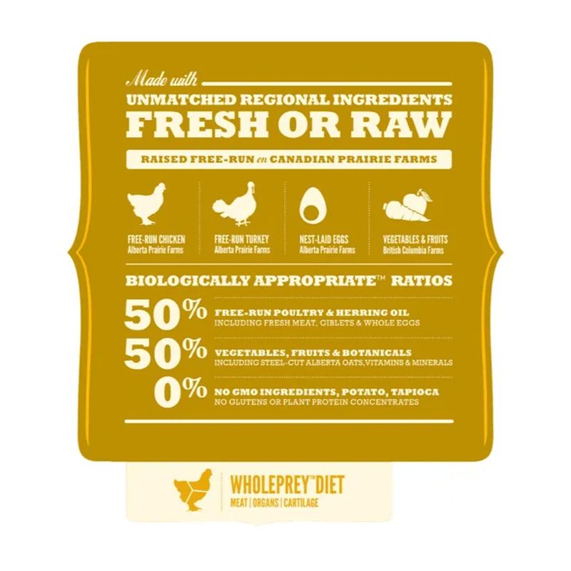 Le ricette di ACANA si basano sul principio del Biologically Appropriate e prevede la riproduzione di qualità, freschezza e varietà degli ingredienti animali che cani e gatti trovano in natura: un’alimentazione ricca di carne e proteine, con ridotto o assente contenuto di carboidrati, nessun estratto di proteine vegetali e l’integrazione di piccole percentuali di frutta, verdura, bacche e ingredienti botanici.