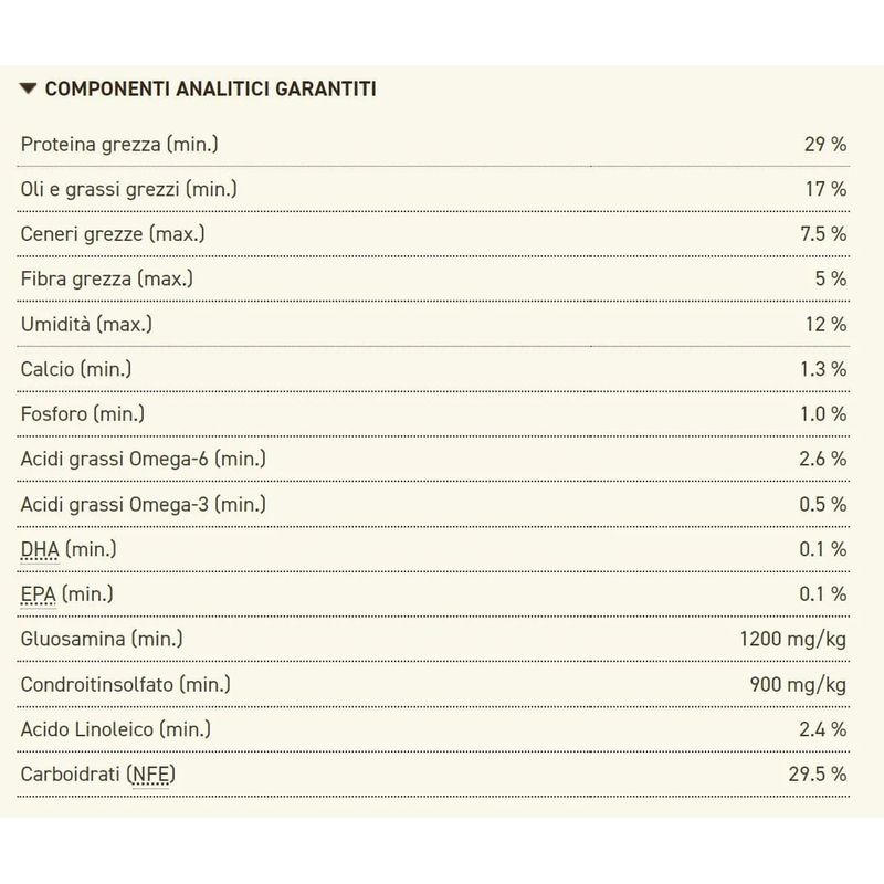 • Realizzato con 50% di ingredienti animali di prima qualità.