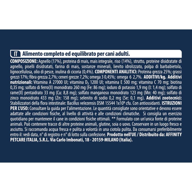 Advance ActiveDefense Dog Adult Medium con Pollo è un alimento secco completo, formulato appositamente per soddisfare le esigenze nutrizionali dei cani adulti di taglia media, dai 1 ai 7 anni. Questo alimento garantisce un'alimentazione naturale e sicura, poiché è privo di conservanti e coloranti aggiunti. Le crocchette contengono pollo come principale fonte di proteina animale di alta qualità, offrendo un apporto proteico facilmente digeribile e ricco di nutrienti essenziali. Questo aiuta a mantenere la massa muscolare del tuo cane, supportando la sua salute e vitalità quotidiana. Il riso e i cereali integrali, utilizzati come fonte di carboidrati, forniscono un'energia equilibrata e sostenibile, mentre la proteina vegetale e le fibre contribuiscono al benessere digestivo. Advance ActiveDefense Dog Adult Medium è arricchito con antiossidanti, provenienti dalle vitamine E e C, che aiutano a neutralizzare i radicali liberi, proteggendo le cellule e sostenendo il sistema immunitario del tuo cane. Inoltre, la presenza di acidi grassi omega-6, omega-3 e zinco contribuisce a mantenere la pelle sana e il pelo brillante, promuovendo un aspetto generale sano e curato.