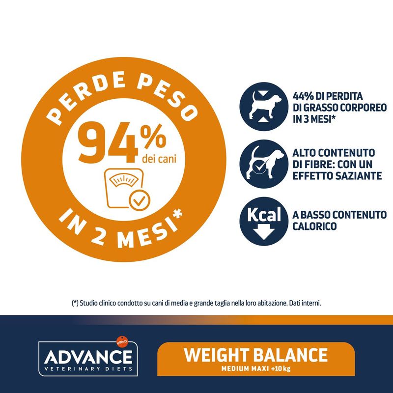 Advance Diets Dog Weight Balance Medium/Maxi si rinnova con nuovo pack e nuova formulazione. Potresti ricevere il vecchio o il nuovo pack in base alla disponibilità in magazzino.