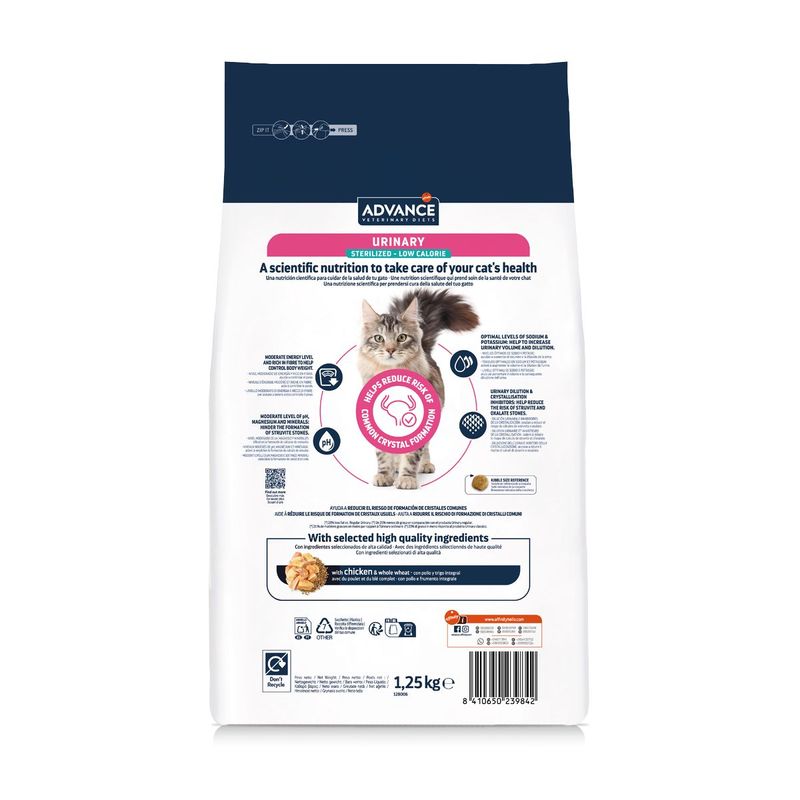 Advance Diets Cat Urinary Sterilized Low Calorie rappresenta una scelta ideale per i proprietari di gatti sterilizzati che desiderano offrire loro un'alimentazione completa e mirata alle loro specifiche esigenze nutrizionali, aiutandoli a mantenere una vita sana e attiva nel lungo termine.