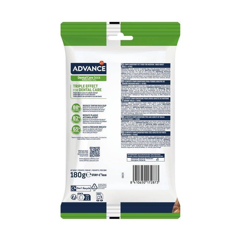 Regala al tuo piccolo amico un sorriso sano e brillante con Advance Snack Dog Medium Maxi Dental Care Stick perché anche i dentini meritano una coccola speciale!