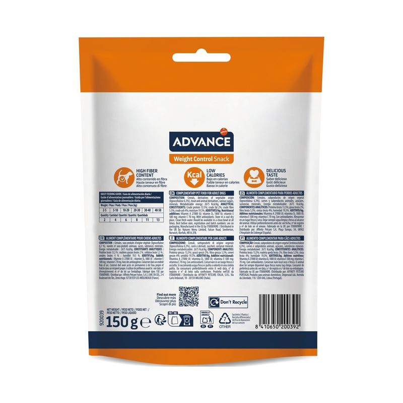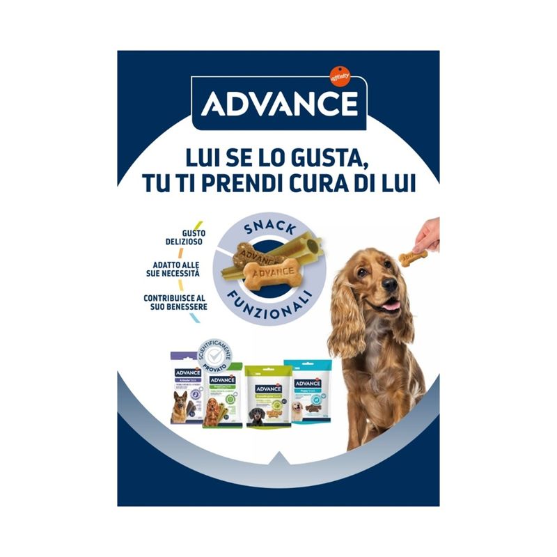 Mantieni il tuo cane in forma senza rinunciare al gusto: scegli Advance Snack Dog Weight Control e trasforma ogni premio in un gesto di benessere e leggerezza!