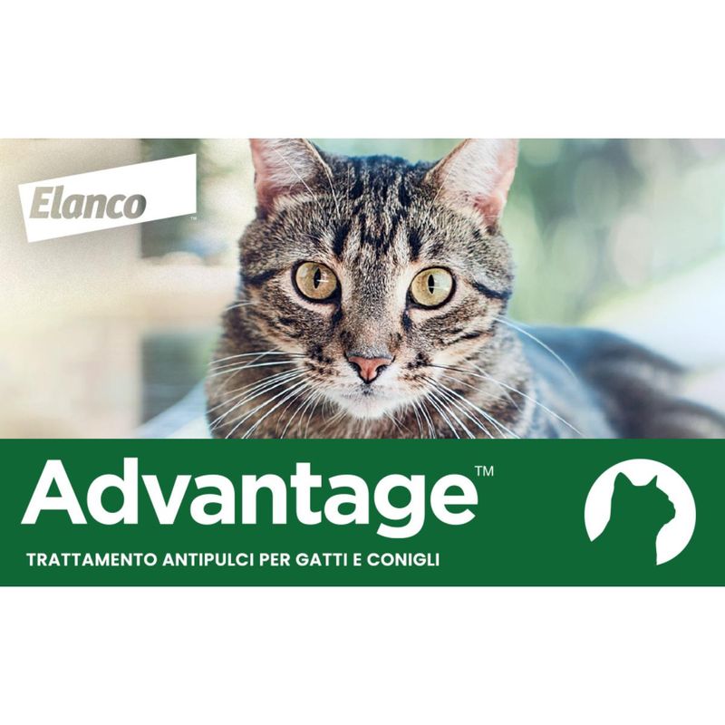 Advantage contiene imidacloprid, un principio attivo che elimina le pulci al contatto, infatti non viene assorbito dal sangue. Questo principio attivo si diffonde nello strato lipidico della cute e del mantello del gatto. Uccide anche le larve delle pulci presenti nell’ambiente circostante l'animale trattato: le larve infatti si nutrono dei detriti cutanei contenenti il principio attivo e saranno eliminate rapidamente, interrompendo il ciclo di vita della pulce.