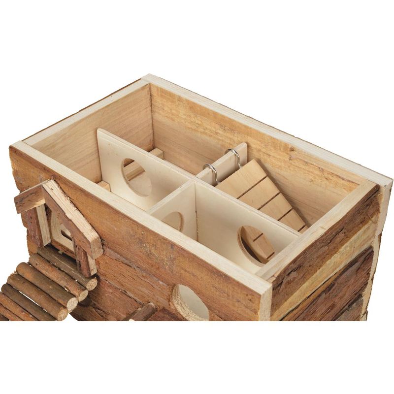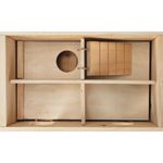 Caratterizzata da un design intricato con una rampa, vari corridoi e nascondigli, la Casetta Labirinto offre al tuo amico molte opportunità per esplorare, arrampicarsi e giocare. Con due piani, otto camere e quattro ingressi, la casa è piena di avventure e sorprese. Inoltre, la presenza di una parete da arrampicata aggiunge un elemento extra di sfida e divertimento. Realizzata con robusto legno naturale proveniente da foreste gestite in modo sostenibile, la casetta è progettata per durare nel tempo e incoraggia il naturale comportamento dei criceti e dei topi di rosicchiare per mantenere i loro denti sani. La casetta è dotata di pavimento e tetto rimovibili, rendendo la pulizia e la manutenzione un'operazione semplice e conveniente per te. Basta rimuovere il tetto e il pavimento per accedere facilmente all'interno e pulire eventuali residui o sporco.