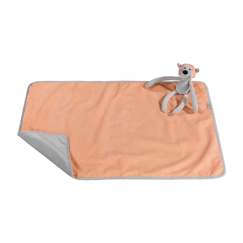 La AniOne Coperta Pepe&Kitty è un set coccoloso composto da una coperta reversibile e un morbido giocattolo abbinato, pensato per il comfort dei cani e gatti adulti. Realizzata in poliestere di alta qualità, la coperta ha un design moderno con motivo a stella e si presenta in una doppia combinazione di colori (grigio/arancione), adattandosi perfettamente a qualsiasi ambiente della casa. È ideale come base per la cuccia, per il divano o da portare in viaggio, grazie alla sua leggerezza e versatilità. Il peluche incluso – in questa variante una simpatica scimmietta – completa il set e aggiunge un tocco di gioco e tenerezza. La coperta è lavabile a 30 °C, mentre il peluche va pulito a mano, per garantire una lunga durata nel tempo.