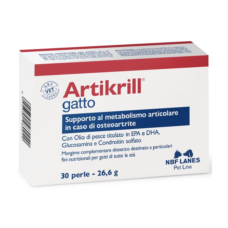 Artikrill Mangime Complementare per Gatto è un alimento complementare studiato per supportare i gatti che soffrono di osteoartrite o che sono soggetti a processi degenerativi delle articolazioni, spesso associati all’età. Grazie ai suoi principi attivi, il mangime agisce come un valido aiuto per favorire la rigenerazione della cartilagine articolare e ridurre l'infiammazione, migliorando così la mobilità del gatto e alleviando i disagi legati all'osteoartrite. Questo prodotto supporta la condrogenesi, ossia la formazione di nuovo tessuto cartilagineo, e aiuta a limitare la condrolesione, ossia il danneggiamento della cartilagine articolare. Inoltre, può integrarsi perfettamente con le terapie mediche volte al recupero della mobilità articolare, potenziando l'efficacia dei trattamenti. Artikrill Gatto si rivela utile anche per ridurre l'infiammazione delle basse vie urinarie, e grazie alla presenza di carnitina, contribuisce a favorire il dimagrimento del gatto, un aspetto fondamentale per alleggerire le articolazioni e migliorare la qualità della vita del tuo amico a quattro zampe.