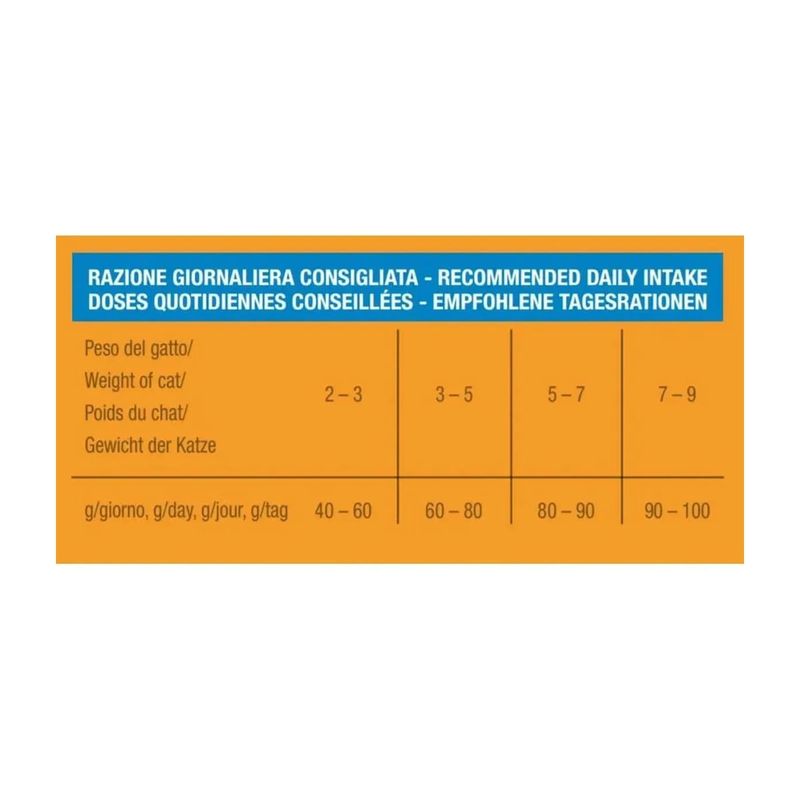 Queste deliziose crocchette favoriscono la digestione aiutando a mantenere l’equilibrio intestinale. Alimento formulato senza cereali ed utilizzo di carboidrati alternativi. Con la presenza dell’olio di salmone, ricca fonte di Omega-3 che contribuisce al benessere fisico del gatto, inoltre contiene la Yucca Schidigera che riduce il caratteristico odore di feci ed urina. I livelli di magnesio sono ridotti per preservare la corretta funzionalità del sistema urinario. Infine contiene la taurina per supportare il suo sistema cardiaco e visivo.