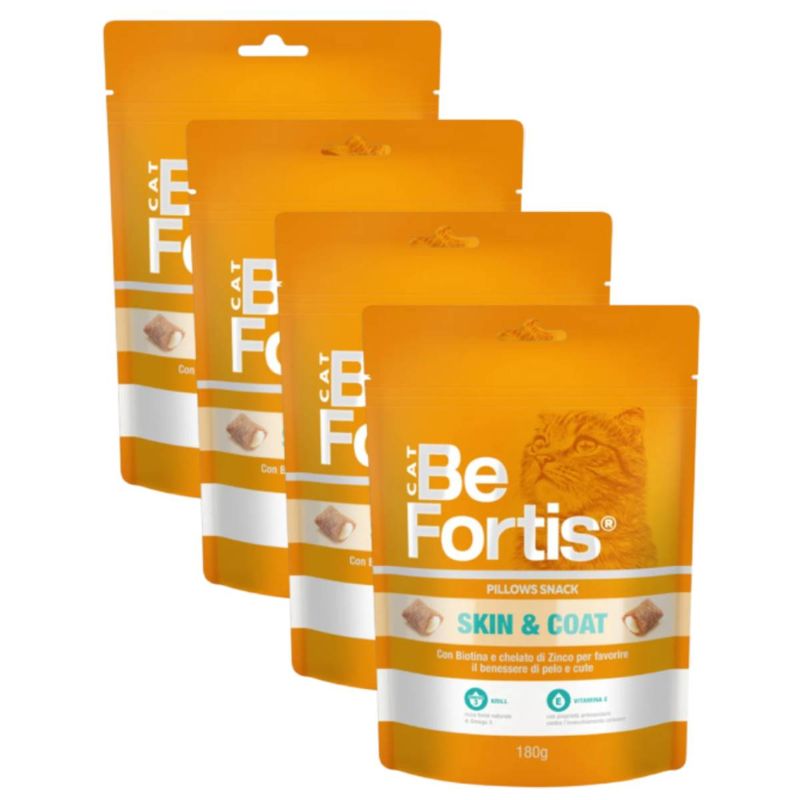 Non rinunciare a rendere il pelo del tuo gatto più bello e sano! Fai felice il tuo micio con BeFortis Cat Pillows Snack Skin&Coat e regala al suo pelo una lucentezza naturale!