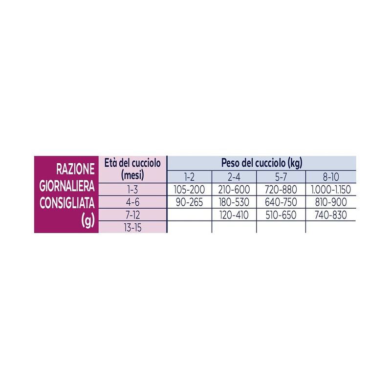 • Formulato per cuccioli in fase di crescita.