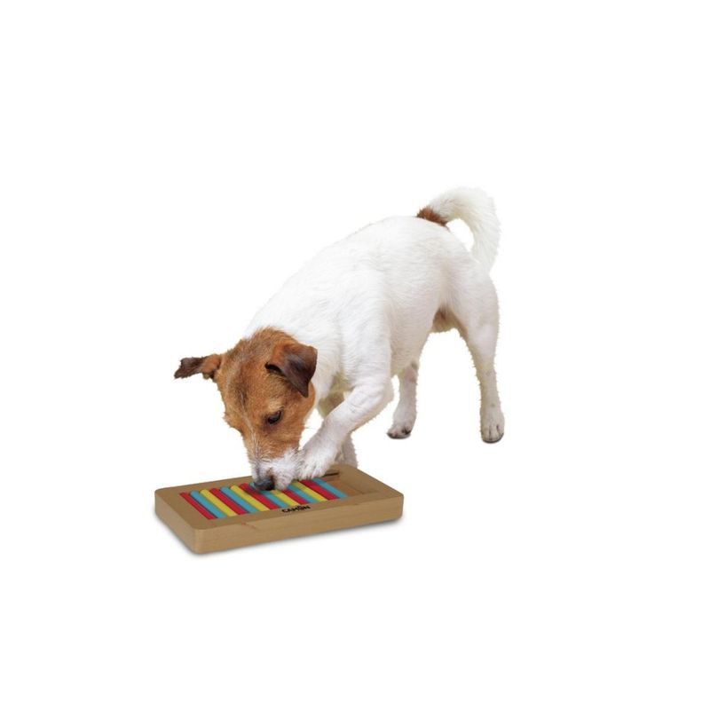 Camon Gioco Cane Puzzle Genius è la linea di giochi che ti consente di mettere alla prova le capacità mentali e fisiche del tuo cane, stimolandolo in modo interattivo e offrendogli un sano divertimento. Realizzato con una struttura in legno, resistente e durevole, progettato per resistere all'uso quotidiano e ai morsi del tuo cane, questo giocattolo stimola le abilità cognitive e fisiche del tuo cane, promuovendo un sano divertimento e un apprendimento continuo. Ti basterà nascondere i suoi snack premio preferiti all’interno dei fori del gioco. Il tuo cane si sentirà sfidato a trovarli e prenderli, utilizzando sia le zampe che il muso, affinando così le sue capacità di problem-solving e la coordinazione. Questo processo di ricerca e scoperta lo terrà impegnato e mentalmente stimolato. Per rendere il gioco ancora più attraente e vario, ricordati di cambiare frequentemente la posizione in cui inserisci i suoi snack. Questo manterrà alto l’interesse del tuo cane e gli offrirà un divertimento senza fine, evitando la noia e promuovendo il suo benessere generale.