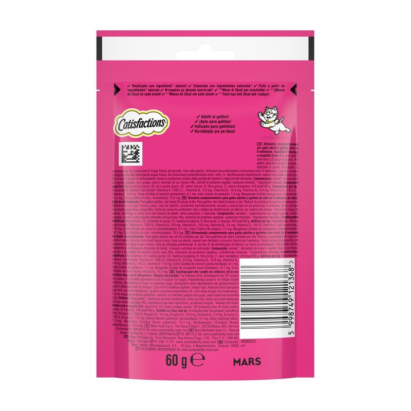 Rendi ogni giorno speciale con il Catisfaction Snack Gatto Manzo, il momento più atteso della giornata dal tuo micio è a portata di zampa!