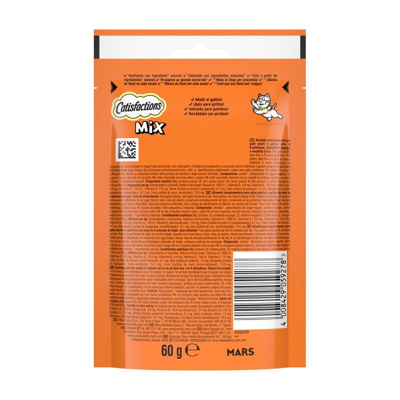 Rendi ogni giorno speciale con il Catisfaction Snack Gatto Pollo e Anatra, il momento più atteso della giornata dal tuo micio è a portata di zampa!