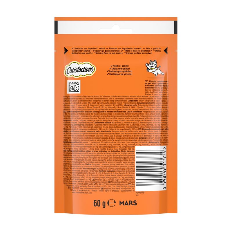 Scegli il Catisfactions Snack per Gatto con Pollo per coccolare il tuo amico felino con uno spuntino sano e delizioso.