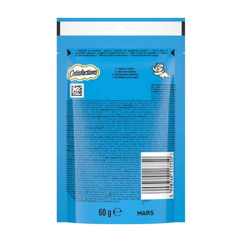 Rendi ogni giorno speciale con il Catisfaction Snack Gatto Salmone, il momento più atteso della giornata dal tuo micio è a portata di zampa!