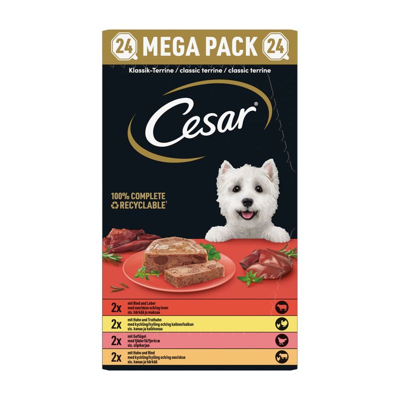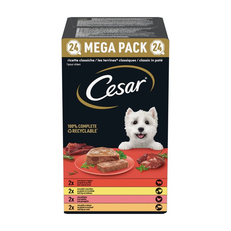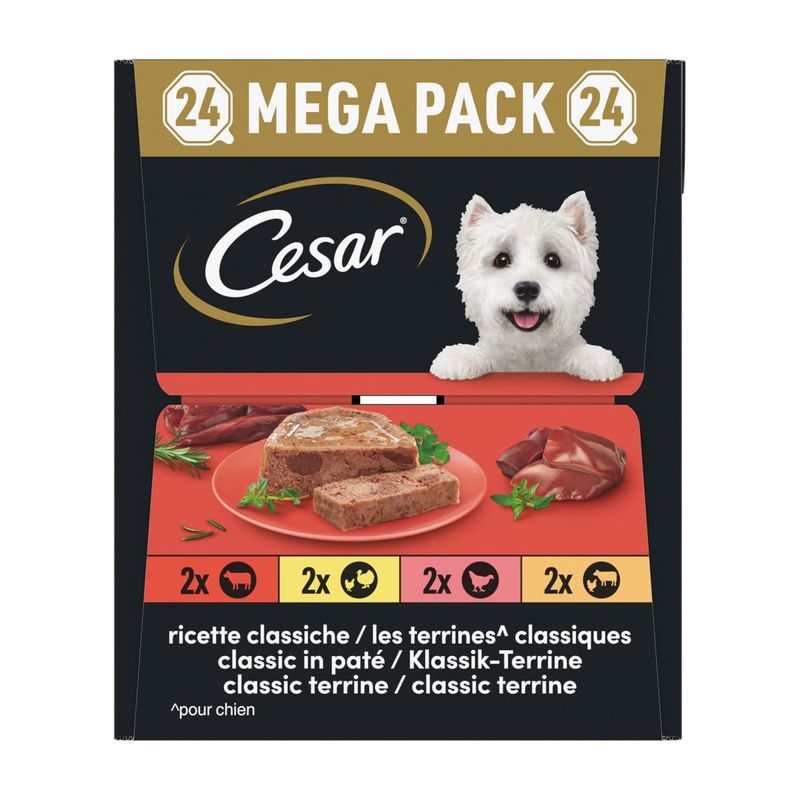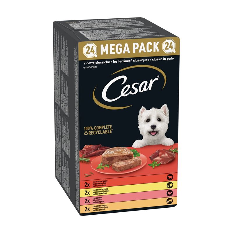 Fai felice il tuo cane con Cesar Dog Ricette Classiche Vaschetta Multipack 24X150G, un pasto equilibrato e gustoso per ogni giorno!