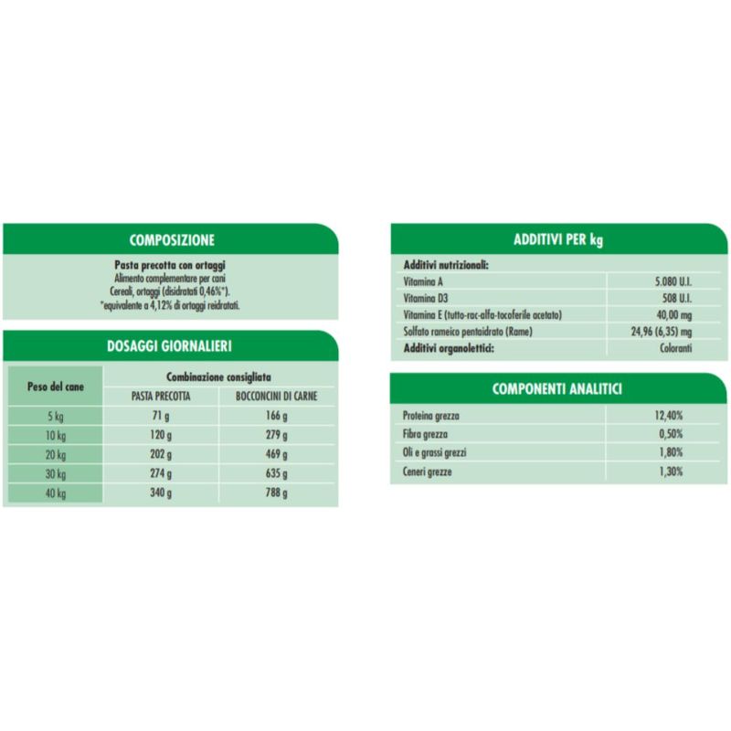 La ricchezza della pasta soddisfa l’appetito del cane e favorisce la digestione leggera.