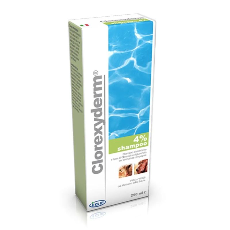 Clorexyderm Shampoo 4% è uno shampoo disinfettante specificamente formulato per la cura e la pulizia del manto e della pelle del tuo cane e del gatto. Questo prodotto offre una detersione profonda, grazie alla sua formula emolliente che non solo pulisce a fondo, ma protegge anche la cute del tuo amico peloso. Dopo l'utilizzo, il pelo del cane rimane lucente e profumato a lungo, evidenziando l'efficacia di clorexidina digluconato 4% nel mantenere il manto in condizioni ottimali. È particolarmente indicato per i casi in cui si desidera unire l'azione pulente a una vigorosa azione disinfettante sulla cute, contribuendo a mantenere la pelle sana e protetta. Questo shampoo è ideale per assicurare al tuo cane una pulizia completa e un benessere prolungato. Shampoo disinfettante ad ampio spettro attivo verso microrganismi sensibili alla clorexidina.