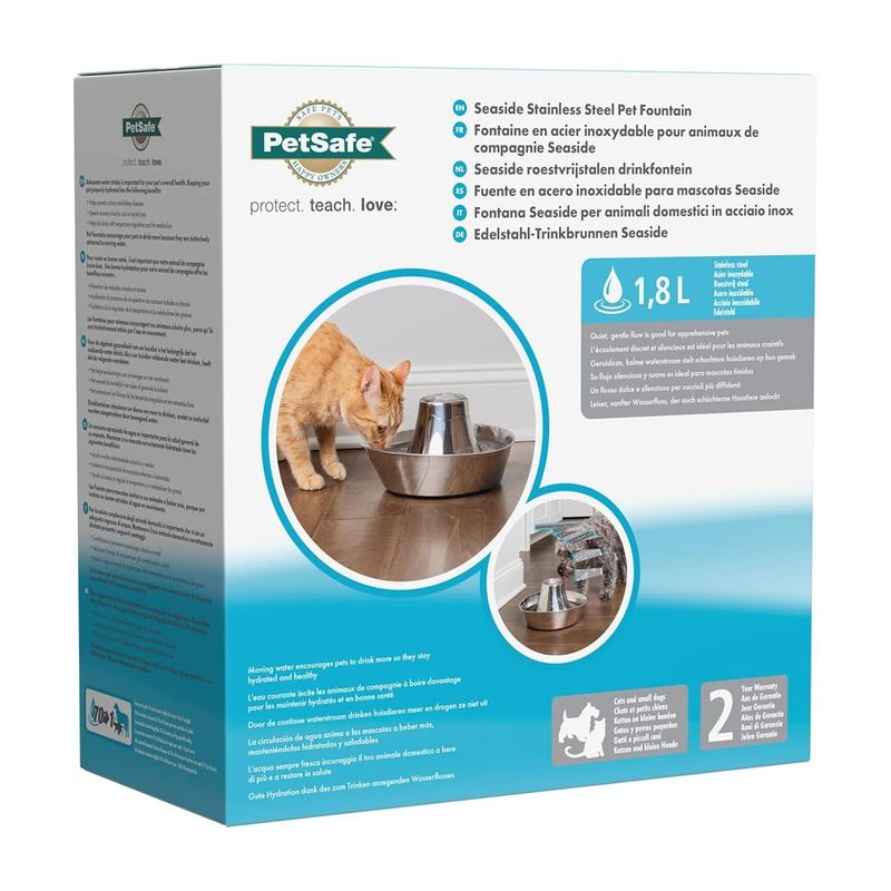 Offri ogni giorno acqua pulita e invitante con la Petsafe Fontana Seaside per Cani e Gatti: il tocco elegante che farà felice il tuo pet (e anche il tuo salotto)!