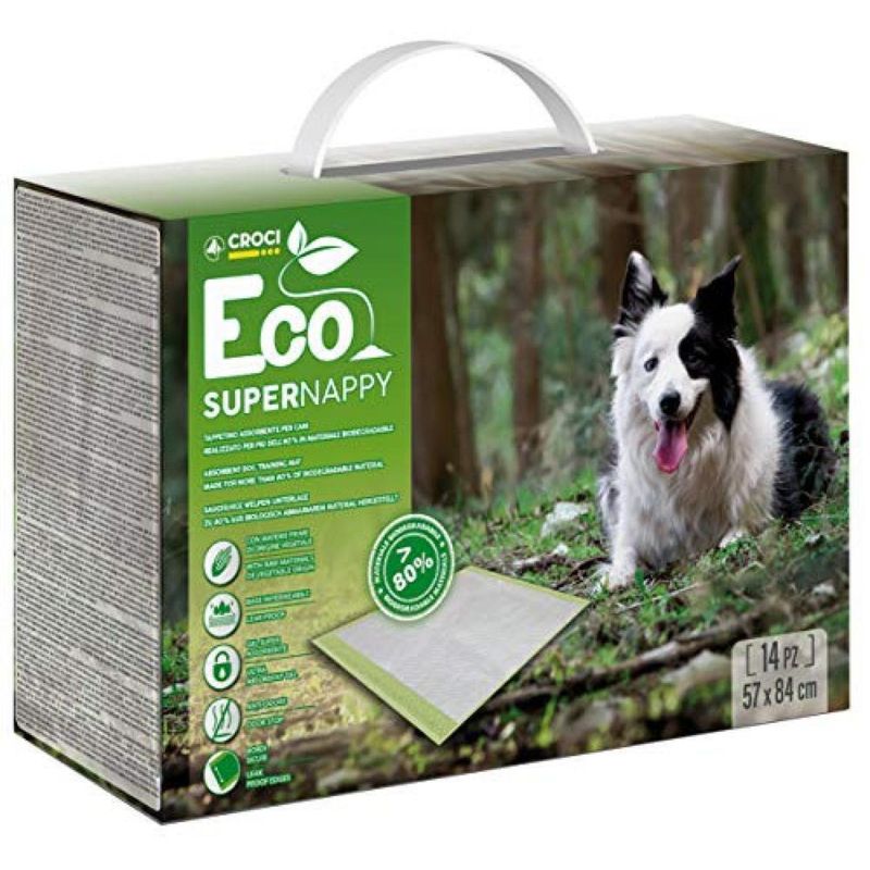 Scegli il rispetto per l’ambiente senza rinunciare alla pulizia con il Croci Tappetino Eco Super Nappy – la soluzione pratica, sostenibile e sicura per te e il tuo cane!