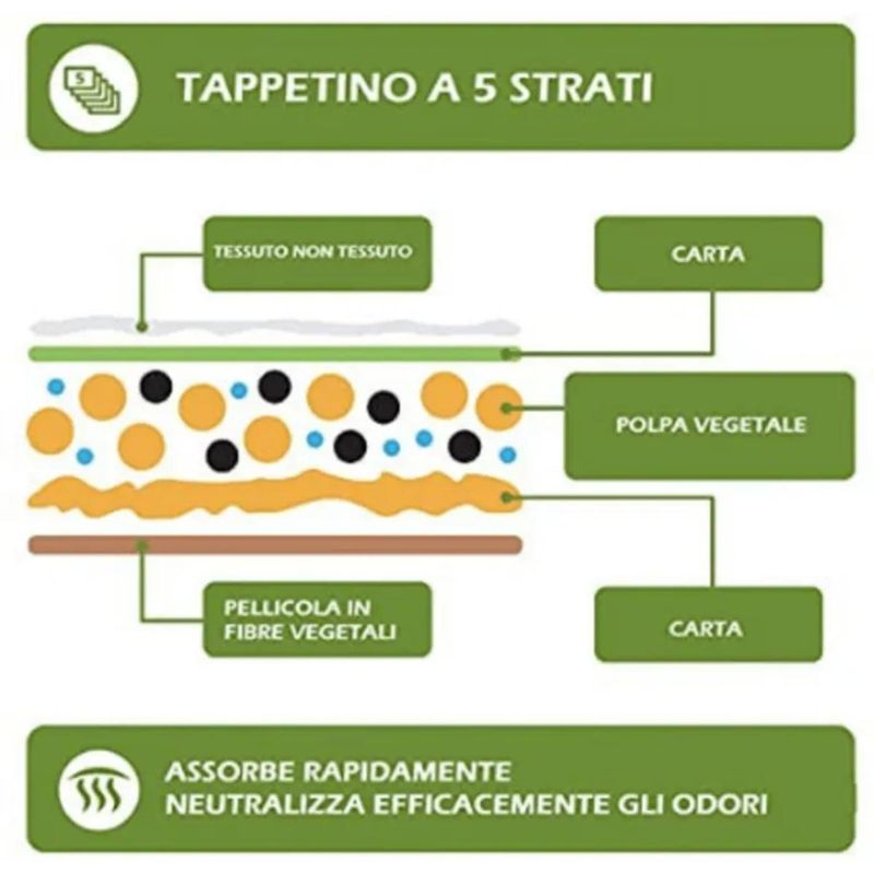 • Tappetino igienico a 5 strati ultra assorbente.