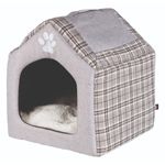 imbottitura in gommapiuma, la casetta è robusta e mantiene la sua forma. Il motivo a scacchi e il bel frontale grigio conferiscono al cesto un aspetto gradevole e senza tempo. Il cesto contiene un accogliente cuscino in pile di poliestere con rivestimento in lana di pecora color crema.