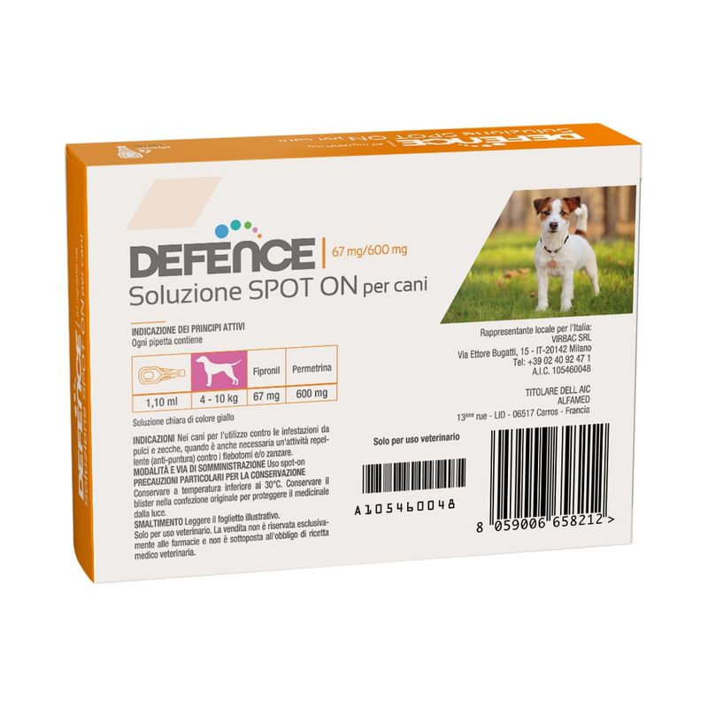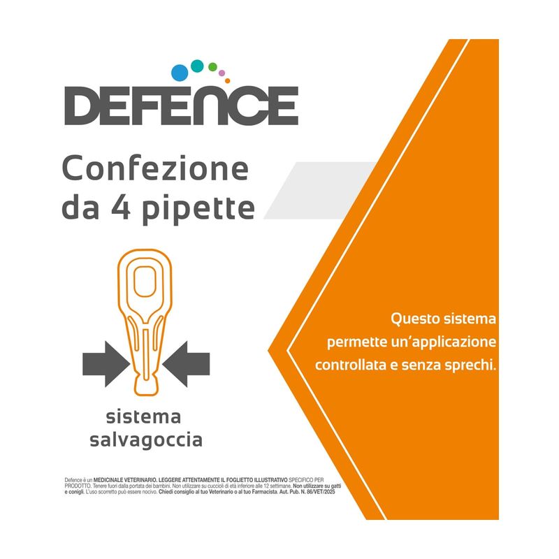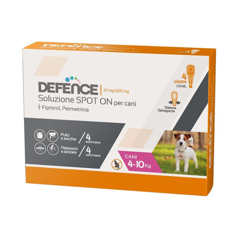 Defence è un antiparassitario in pipette per cani, indicato contro pulci, zecche, zanzare e flebotomi.