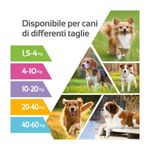 Utilizzabile in cani a partire da 12 settimane di età o di peso superiore a 1,5 kg. Il formato deve essere scelto in base alla fascia di peso (es. toy, piccola, media, grande, gigante).