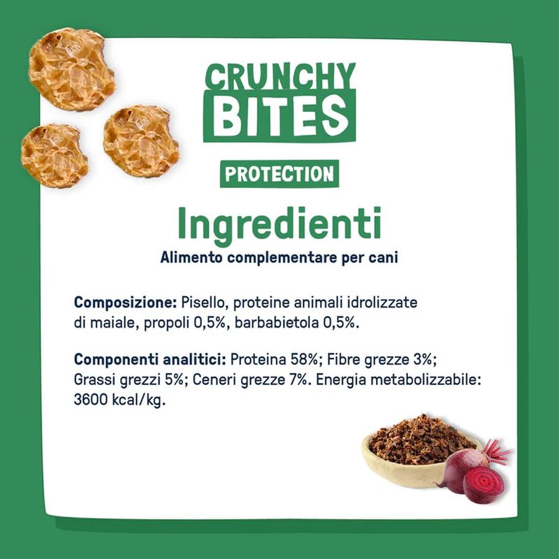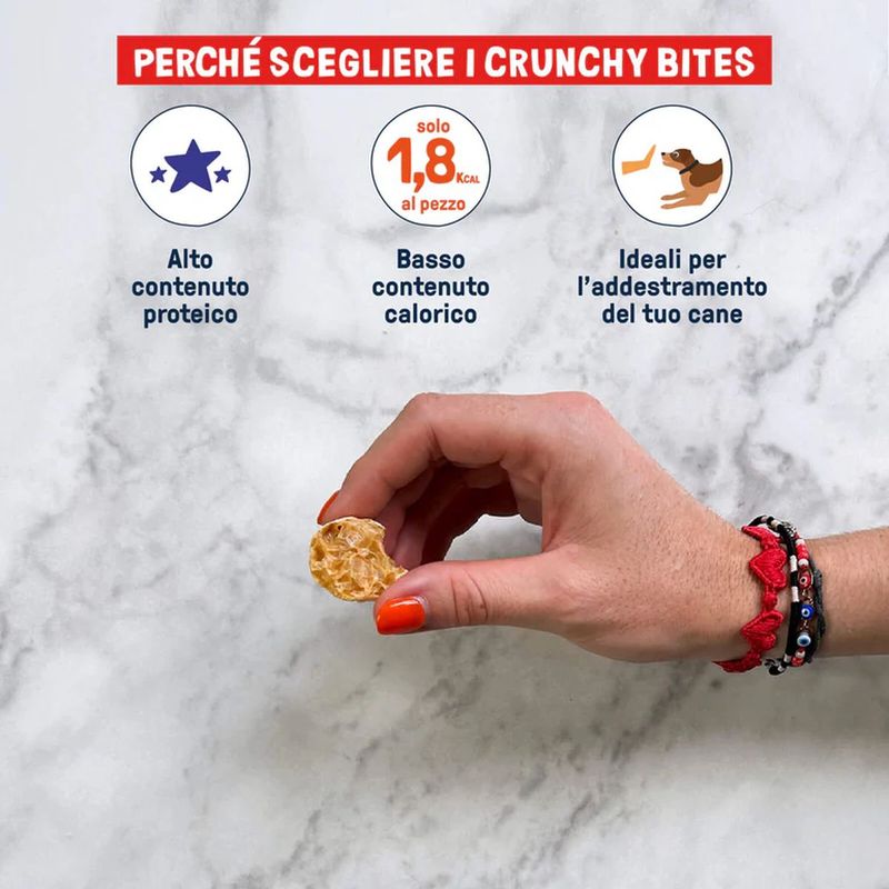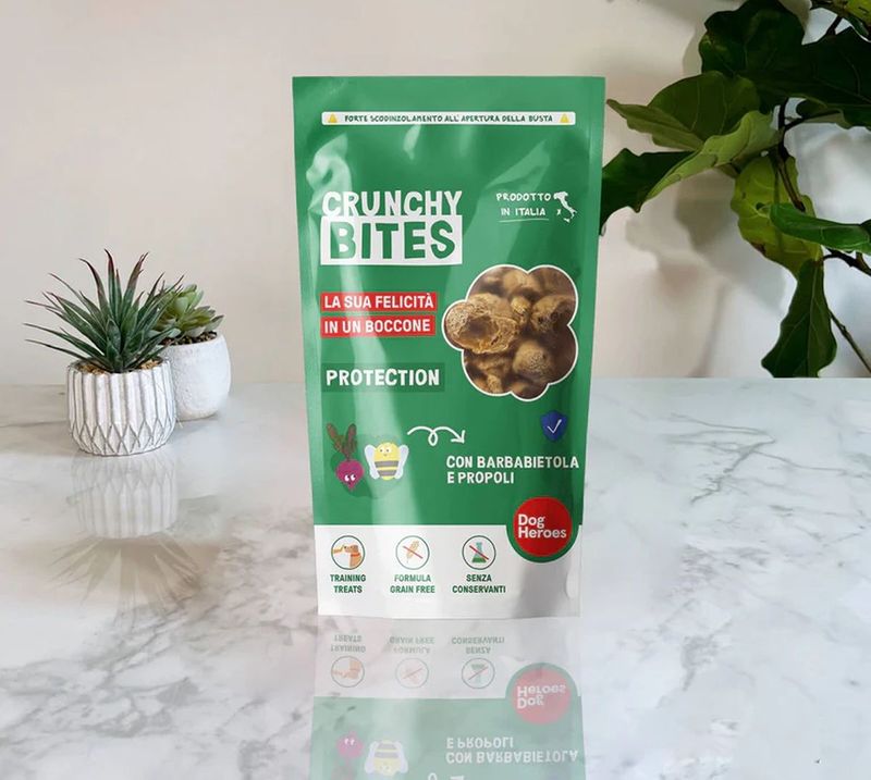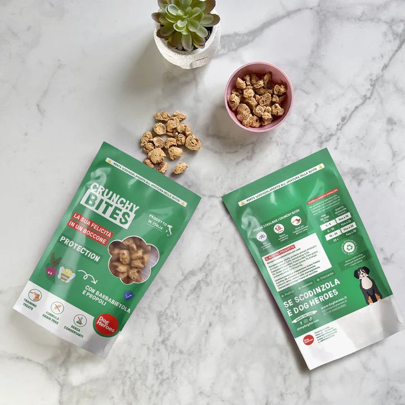Scegliendo Dog Heroes Snack Cane Crunchy Bites Protection, offrirai al tuo cane uno snack sano e gustoso che nutre il corpo e rafforza il sistema immunitario, trasformando ogni boccone in un gesto d'amore e benessere.