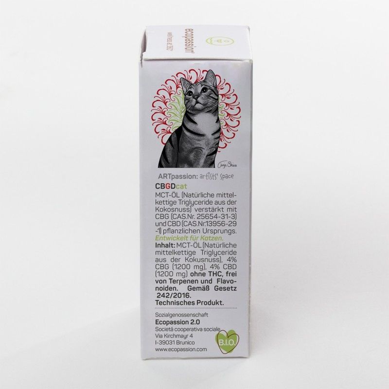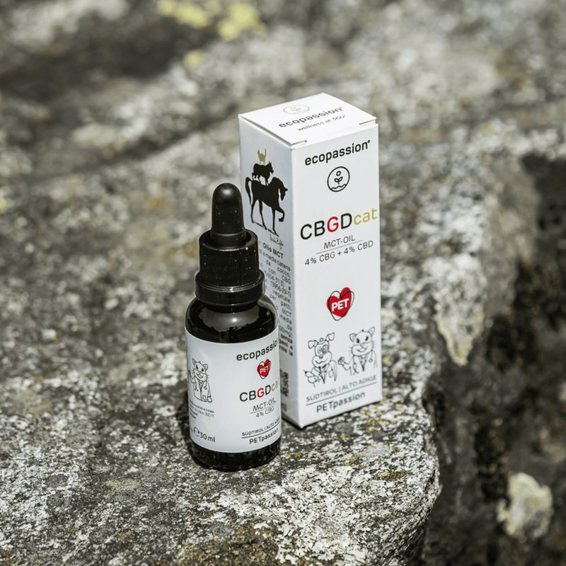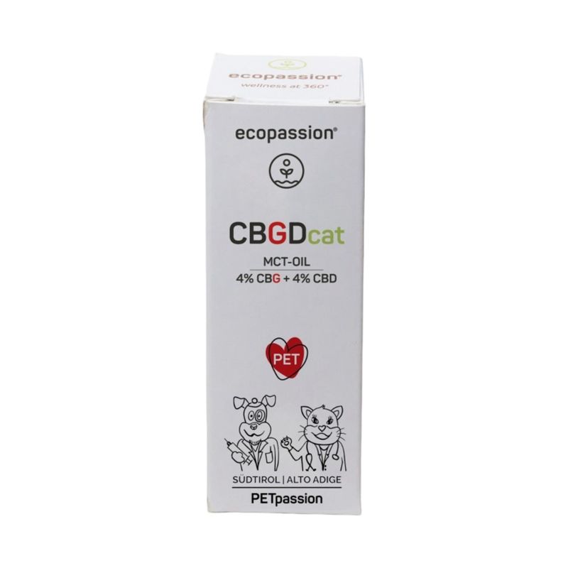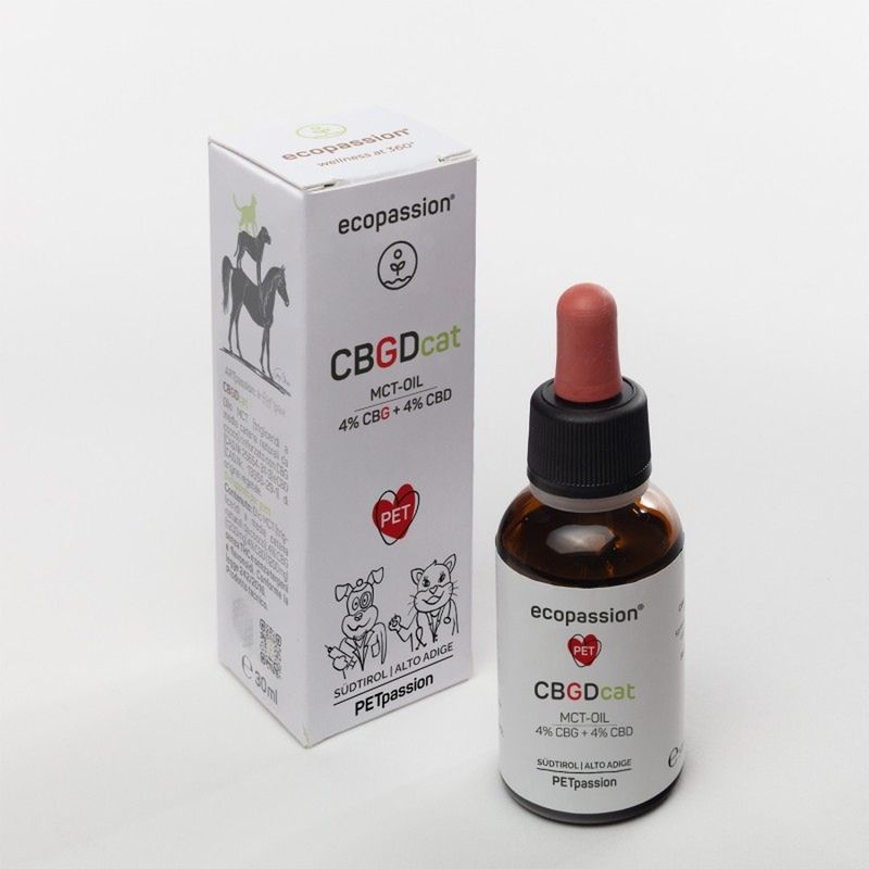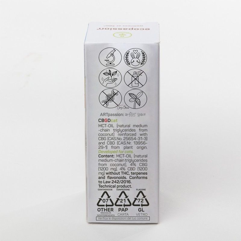 Il Ecopassion Olio Complementare CBGD per Gatti è un olio complementare liquido pensato per il benessere dei gatti di tutte le età, anche quelli più sensibili. La sua formula unica combina il 4% di CBD (Cannabidiolo) e il 4% di CBG (Cannabigerolo), entrambi isolati e di origine vegetale, per un’azione sinergica e completa. Ideale per supportare l’equilibrio neurochimico, favorire una buona funzionalità gastrointestinale e mantenere un intestino sano, questo olio è perfetto anche per il benessere della pelle. Grazie alla base di olio MCT da cocco, si assorbe rapidamente senza ungere, ed è incolore, inodore e non grasso. Il prodotto è totalmente senza THC, senza terpeni e flavonoidi, quindi sicuro anche per i felini più delicati. Il CBD apporta proprietà lenitive, antiossidanti ed equilibranti, mentre il CBG svolge un ruolo protettivo e riequilibrante, con effetto armonizzante sulla pelle.
