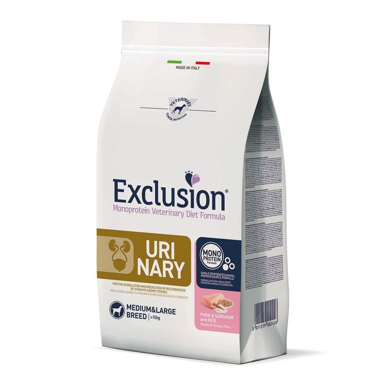 Exclusion Dog Diet Urinary Medium&Large Maiale è una soluzione nutrizionale completa per i cani che necessitano di un supporto specifico per problemi urinari.