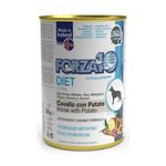 Forza10 Diet Cavallo e Patate è un alimento umido dietetico completo in lattina, per cani adulti di tutte le razze. Questo prodotto è indicato per la riduzione delle intolleranze alimentari a ingredienti e sostanze nutritive avverse, risultando particolarmente utile in caso di dermatosi ed eccessiva perdita di pelo. Inoltre, può essere impiegato durante la fase di recupero post-operatorio. L'alimento è privo di conservanti aggiunti e contiene cavallo come unica fonte proteica animale. La carne di cavallo è una carne rossa, naturalmente ricca di ferro, e rappresenta una scelta eccellente per le diete da privazione. Essendo una proteina meno comune, è un'ottima alternativa per cani soggetti a intolleranze alimentari o sensibilità a proteine più comuni come il pollo o il manzo. Forza10 Diet Cavallo e Patate è altamente appetibile, grazie alla sua formulazione in delizioso paté che i cani trovano irresistibile. Oltre alla carne di cavallo, l'alimento contiene patate, che forniscono una fonte facilmente digeribile di carboidrati, contribuendo a un equilibrio nutrizionale ottimale. Le patate sono anche una buona fonte di vitamine e minerali, supportando la salute generale del cane.