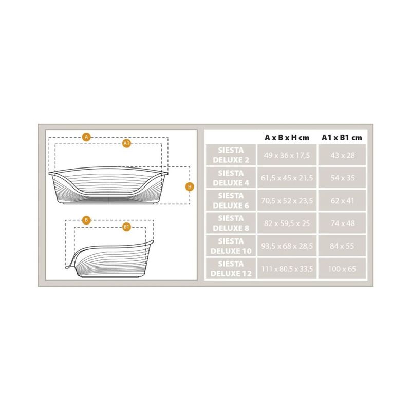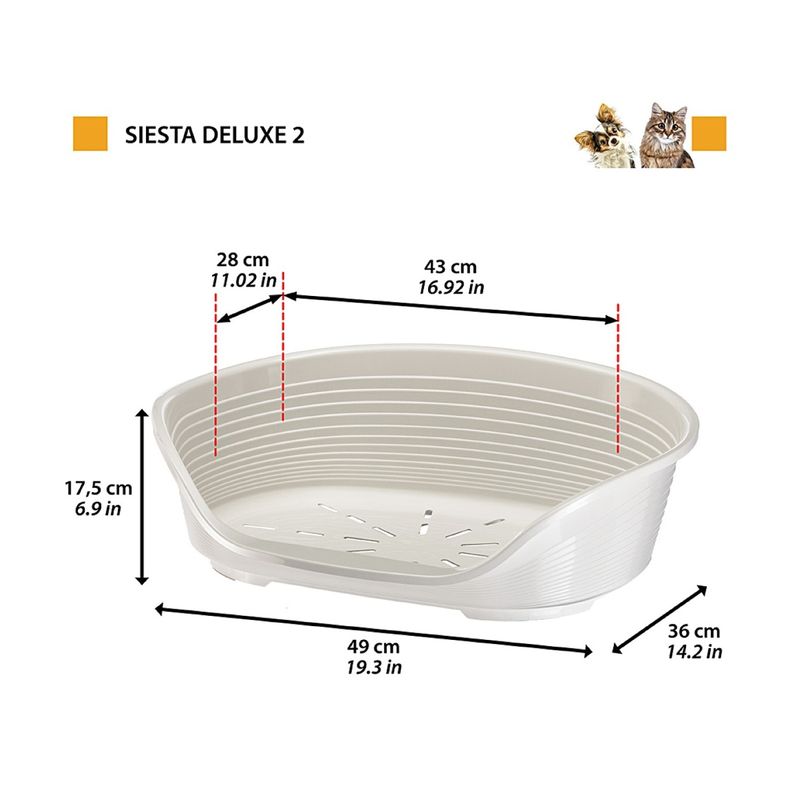 I Siesta Deluxe Bianco è disponibile in sei dimensioni diverse, adatte a cani di tutte le taglie.