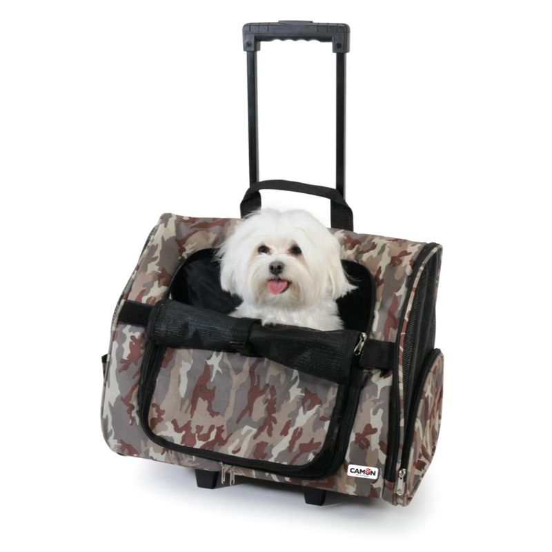 Prepara il tuo compagno peloso per un'avventura senza limiti con il Trolley Zainetto Mimetico di Camon!