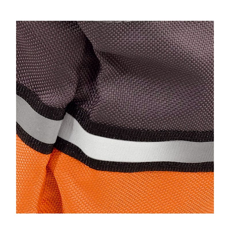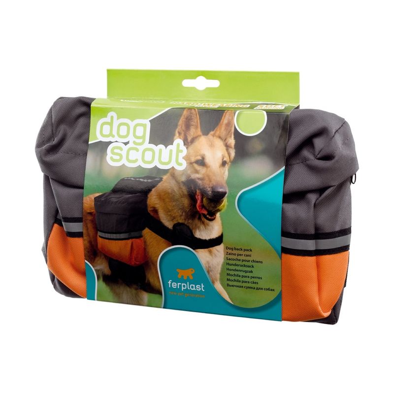 Zaino Dog Scout è uno zaino funzionale, ideale per cani di taglia media e grande, realizzato in robusto nylon, perfetto per accompagnare ogni avventura con il tuo amico a quattro zampe. È dotato di ampie tasche per riporre tutti gli accessori necessari durante il viaggio, come guinzagli, snack, ciotole portatili e sacchetti igienici. È ideale per le escursioni in montagna, grazie alla sua struttura leggera e confortevole, progettata per non irritare la pelle o rovinare il pelo del cane, grazie alle fibbie imbottite che garantiscono massimo comfort. Lo zaino è equipaggiato con cinghie regolabili robuste e fibbie con agganci a scatto in plastica resistenti, offrendo una vestibilità sicura e personalizzata. La parte superiore in rete di nylon migliora la traspirabilità, mentre le tasche laterali con cerniera facilitano l'organizzazione degli accessori. Un'importante considerazione è non sovraccaricare lo zaino, per evitare di affaticare il cane. Lo zaino è disponibile in una combinazione di colori arancione e grigio con bande riflettenti laterali, per garantire una maggiore visibilità nelle ore notturne o in condizioni di scarsa illuminazione.