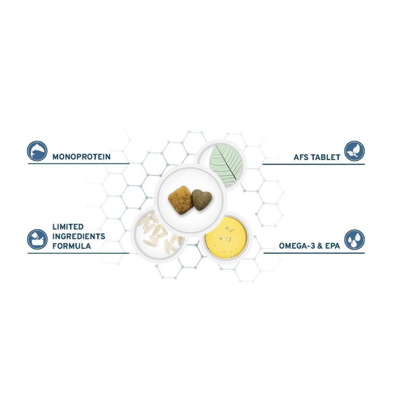 • Con un'unica fonte alternativa di proteine animali, derivante da pesce di elevato valore biologico e alta biodisponibilità.