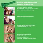- Porre la punta della pipetta sulla cute e premere per applicare tutto il contenuto in un punto solo. La pipetta va schiacciata più volte, fino a completo svuotamento, applicando il prodotto direttamente sulla cute e non sul pelo.