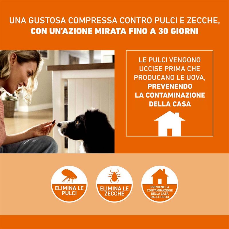 - Scegliere la compressa del formato adatto al peso del cane.
