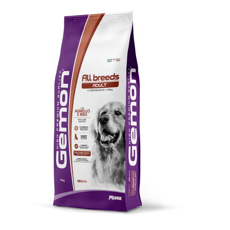 Gemon Cane Adult All Breeds Agnello e Riso è un alimento secco completo e bilanciato, appositamente formulato per cani adulti di tutte le taglie. Questo alimento è stato attentamente formulato con ingredienti di alta qualità e contiene carne fresca l’agnello, come fonte di proteina aniamle di alta qualità, che conferisce una maggiore appetibilità e il riso, che fornisce carboidrati altamente digeribili grazie al processo di estrusione. La sua formulazione equilibrata include anche L-carnitina, che supporta la massa muscolare del tuo cane, contribuendo a mantenerlo in forma e attivo, prebiotici come i fruttoligosaccaridi (FOS) e polpa di barbabietola, che favoriscono la regolarità del tratto intestinale, contribuendo così alla salute digestiva del tuo cane. La presenza di yucca schidigera aiuta a controllare gli odori intestinali, migliorando così l'igiene generale del tuo cane. E per garantire la massima sicurezza e qualità, questo alimento non contiene coloranti né conservanti artificiali aggiunti.