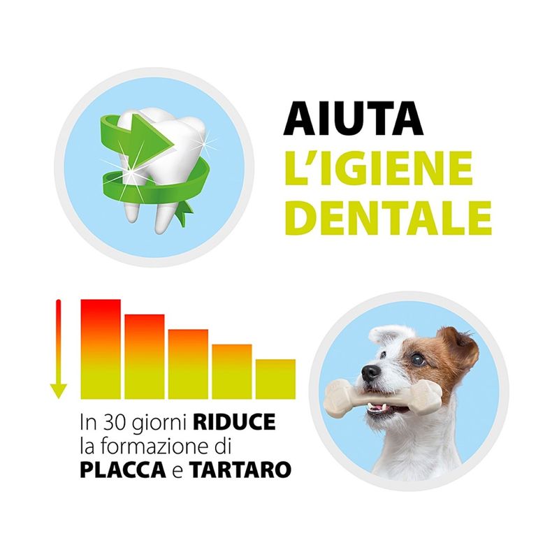 Il Natural Osso Pollo Goodbite è un divertente gioco per cani, studiato per soddisfare l'innato istinto di masticare del tuo fedele amico a quattro zampe. Aromatizzato al pollo, è realizzato con componenti naturali, atossici e biodegradabili, che lo rendono sicuro anche in caso di ingestione accidentale. Questo osso non altera la dieta del cane, poiché privo di sostanze nutritive, garantendo così un'attività di masticazione senza apportare calorie. Grazie all'azione meccanica della masticazione, i giochi GoodBite Natural aiutano a mantenere i denti del cane puliti, riducendo la formazione di tartaro e contribuendo a rinforzare i denti. Completamente commestibile, il prodotto è igienicamente sicuro: non favorisce la proliferazione di microbi, muffe, patogeni o funghi. Inoltre, il sapore dell'osso si conserva a lungo nel tempo e non ha una data di scadenza.