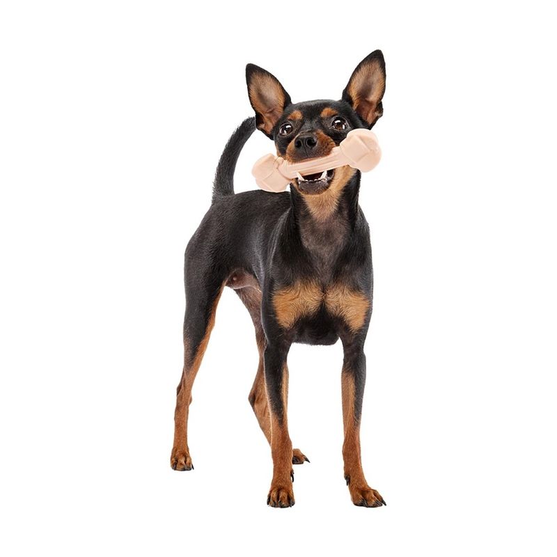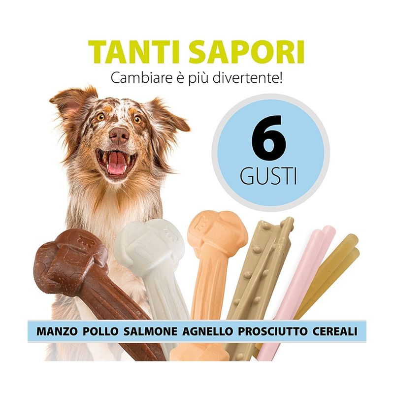 Il Osso Natural Prosciutto Goodbite è un divertente gioco per cani, studiato per soddisfare l'innato istinto di masticare del tuo fedele amico a quattro zampe. Aromatizzato al prosciutto, è realizzato con componenti naturali, atossici e biodegradabili, che lo rendono sicuro anche in caso di ingestione accidentale. Questo osso non altera la dieta del cane, poiché privo di sostanze nutritive, garantendo così un'attività di masticazione senza apportare calorie. Grazie all'azione meccanica della masticazione, i giochi GoodBite Natural aiutano a mantenere i denti del cane puliti, riducendo la formazione di tartaro e contribuendo a rinforzare i denti. Completamente commestibile, il prodotto è igienicamente sicuro: non favorisce la proliferazione di microbi, muffe, patogeni o funghi. Inoltre, il sapore dell'osso si conserva a lungo nel tempo e non ha una data di scadenza.