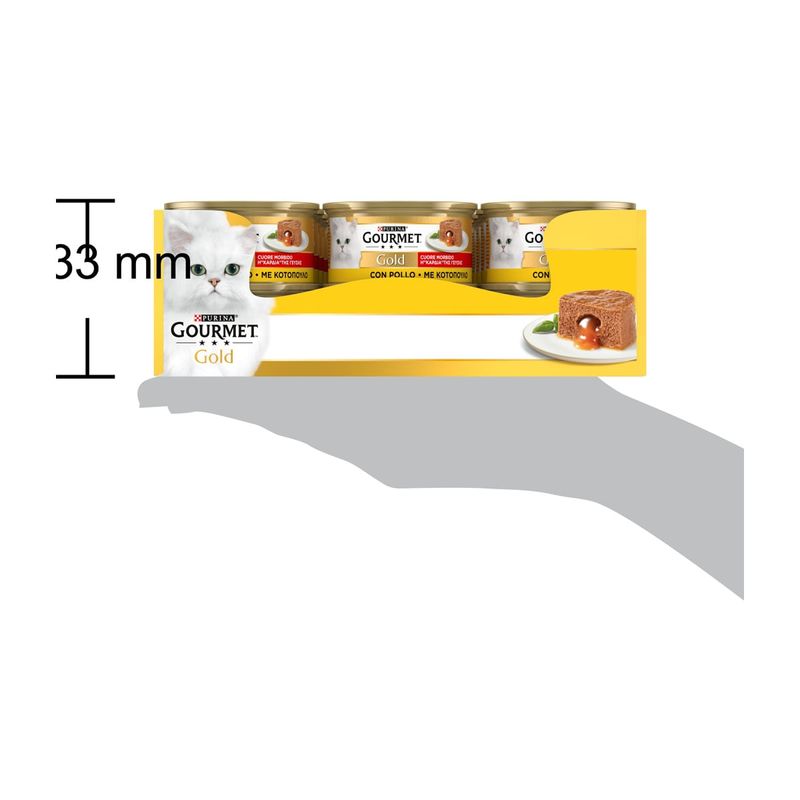 Ogni giorno, puoi deliziare il tuo gatto con gioia offrendogli Gourmet Gold Cuore Morbido, poiché ogni ricetta è stata preparata appositamente per soddisfare il suo palato raffinato. E la migliore parte? Le ricette Gourmet Gold sono prive di coloranti, conservanti e aromi artificiali aggiunti, garantendo al tuo gatto un pasto naturale e genuino.