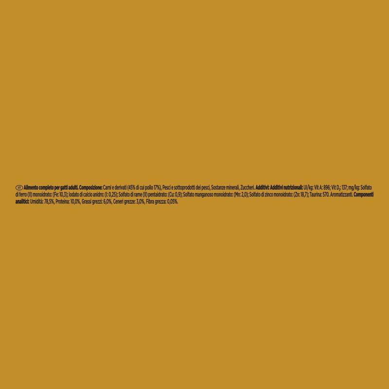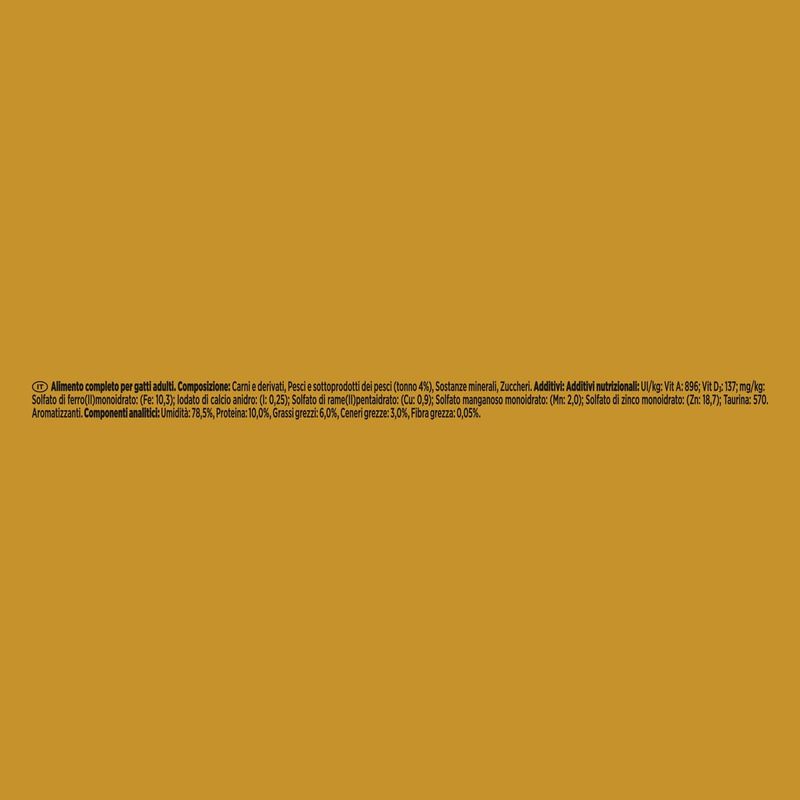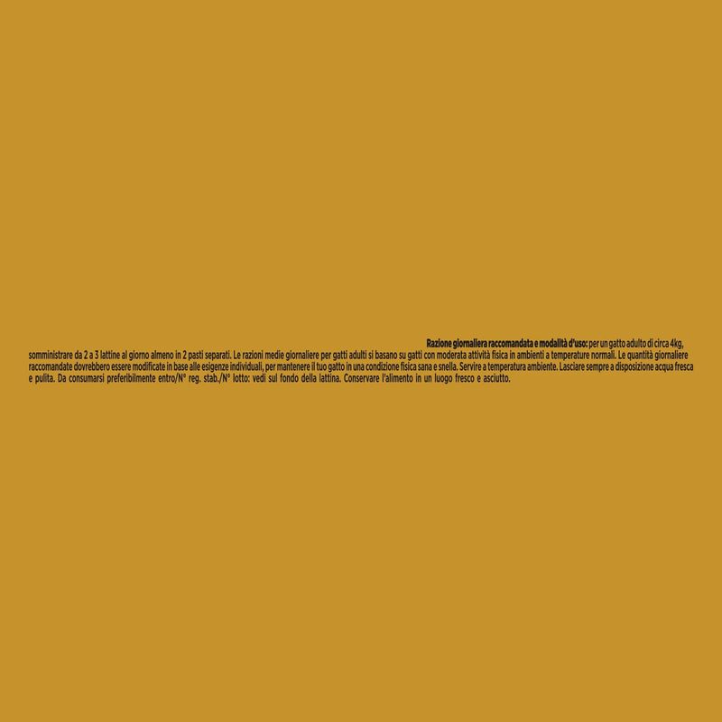 N.B. Il prodotto è disponibile in formato lattina multipack da 24x85G nei gusti a scelta tra: Manzo, Pollo, Salmone e Tonno.