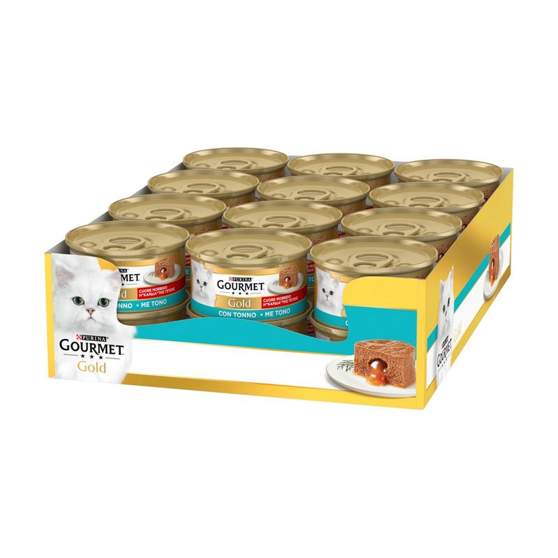 Gourmet Gold Cuore Morbido Cat Lattina Multipack 24x85G è un alimento umido completo in lattina che soddisfa il palato sofisticato del tuo gatto adulto con le deliziose ricette di mousse che faranno impazzire il palato raffinato del tuo gatto, regalandogli una diversa esperienza gustativa ad ogni pasto. Questo alimento senza l'aggiunta di coloranti, conservanti o aromi artificiali, contiene ingredienti di alta qualità così puoi essere sicuro di offrire al tuo amico peloso un'alimentazione genuina e salutare, senza compromessi. Se il tuo gatto ama la consistenza soffice e vellutata della mousse, allora non potrà resistere alla tentazione di Gold Cuore Morbido. Questa irresistibile mousse di carne o pesce è arricchita con un cuore sorprendentemente morbido al suo interno, creando un'esperienza di gusto unica e indimenticabile. Ogni boccone è una delizia per il palato del tuo felino, mentre gusta la soffice e delicata mousse, scoprirà con gioia il cuore di prelibata salsa che lo conquisterà completamente. Confezionato in pratiche lattine da 85G, questo multipack offre una varietà di sapori irresistibili che renderanno l'esperienza alimentare del tuo gatto più interessante e appagante.