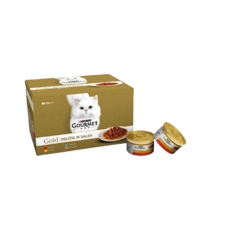 Gourmet Gold Delizie in Salsa Cat Lattina Multipack 48x85G è un alimento umido completo in lattina che soddisfa il palato sofisticato del tuo gatto adulto con le deliziose ricette di filettini che faranno impazzire il palato raffinato del tuo gatto, regalandogli una diversa esperienza gustativa ad ogni pasto. Se il tuo gatto potesse scegliere, chiederebbe solo una cosa ad ogni pasto: salsa, salsa e ancora salsa. Ed è per questo che Gourmet Gold ha creato Delizie In Salsa. Questo alimento senza l'aggiunta di coloranti, conservanti o aromi artificiali, contiene ingredienti di alta qualità così puoi essere sicuro di offrire al tuo amico peloso un'alimentazione genuina e salutare, senza compromessi. I filettini di carne o pesce di altissima qualità sono delicatamente immersi in un'abbondante deliziosa salsa, dove ogni morso è un'esplosione di gusto e piacere, garantendo al tuo gatto una vera e propria festa gastronomica ad ogni pasto. Ogni morso è un'esplosione di gusto e piacere, garantendo al tuo gatto una vera e propria festa gastronomica ad ogni pasto. Confezionato in pratiche lattine da 85G, questo multipack offre una varietà di sapori irresistibili che renderanno l'esperienza alimentare del tuo gatto più interessante e appagante.