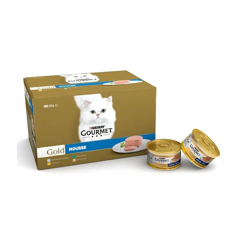 Gourmet Gold Mousse Cat Lattina Multipack è un alimento umido completo, pensato per gatti adulti dal palato raffinato. Ogni lattina racchiude una mousse soffice e cremosa, preparata con carni pregiate come tacchino, pollo, coniglio e pesce dell’oceano. Questa consistenza vellutata stimola anche i gatti più esigenti, rendendo ogni pasto un piccolo lusso quotidiano. Le ricette sono formulate per offrire benessere digestivo e una nutrizione equilibrata, mentre alcuni gusti apportano benefici specifici come il supporto al sistema immunitario o la salute della pelle e del pelo. Gli ingredienti chiave, accuratamente selezionati, contribuiscono al mantenimento della vitalità e del tono muscolare del tuo gatto. Le mousse non contengono coloranti, conservanti o aromi artificiali, per un’alimentazione naturale e sicura.