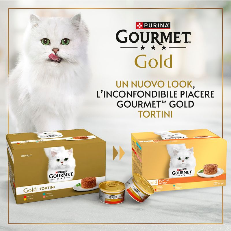 Sorprendi il tuo gatto con Gourmet Gold Tortini Cat Lattina Multipack e regalagli un'esperienza di gusto indimenticabile ad ogni boccone. Concedigli il lusso di assaporare la bontà delle nostre ricette, pensate appositamente per coccolare il suo palato raffinato.
