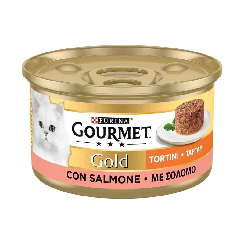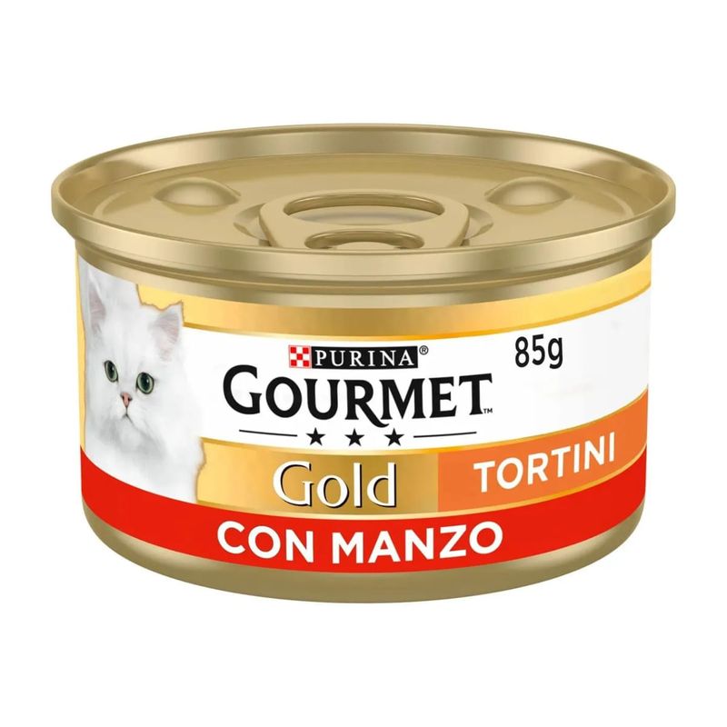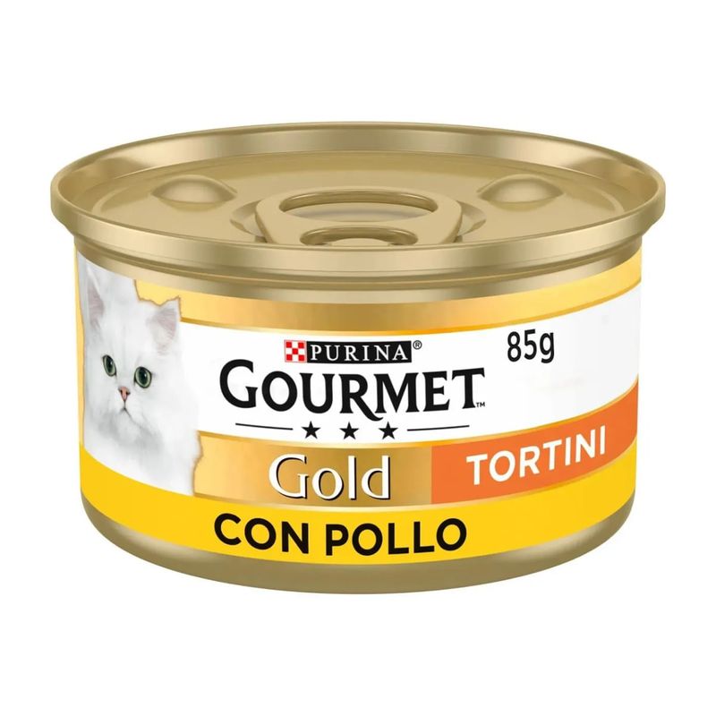 Gourmet Gold Tortini Cat Lattina Multipack è un alimento umido completo in lattina che soddisfa il palato sofisticato del tuo gatto adulto con le deliziose ricette di tortini che faranno impazzire il palato raffinato del tuo gatto, regalandogli una diversa esperienza gustativa ad ogni pasto. Questo alimento senza l'aggiunta di coloranti, conservanti o aromi artificiali, contiene ingredienti di alta qualità così puoi essere sicuro di offrire al tuo amico peloso un'alimentazione genuina e salutare, senza compromessi. I tortini sono composti da piccoli bocconi finemente tagliati, arricchiti con pollo, manzo, salmone e tonno, delicatamente accompagnati da un tocco di salsa che renderà ogni assaggio un vero piacere per il palato del tuo gatto. Confezionato in pratiche lattine da 85G, questo multipack offre una varietà di sapori irresistibili che renderanno l'esperienza alimentare del tuo gatto più interessante e appagante. Ogni tortino è una prelibatezza pensata per deliziare il tuo amico a quattro zampe ad ogni morso.